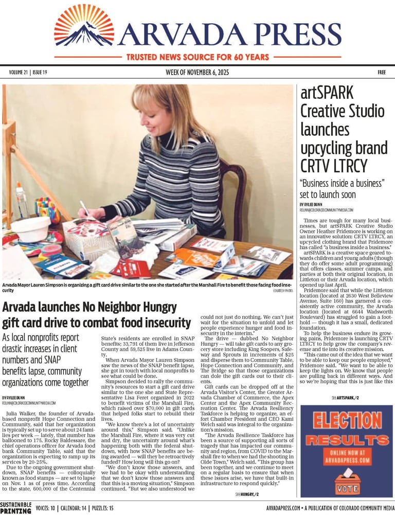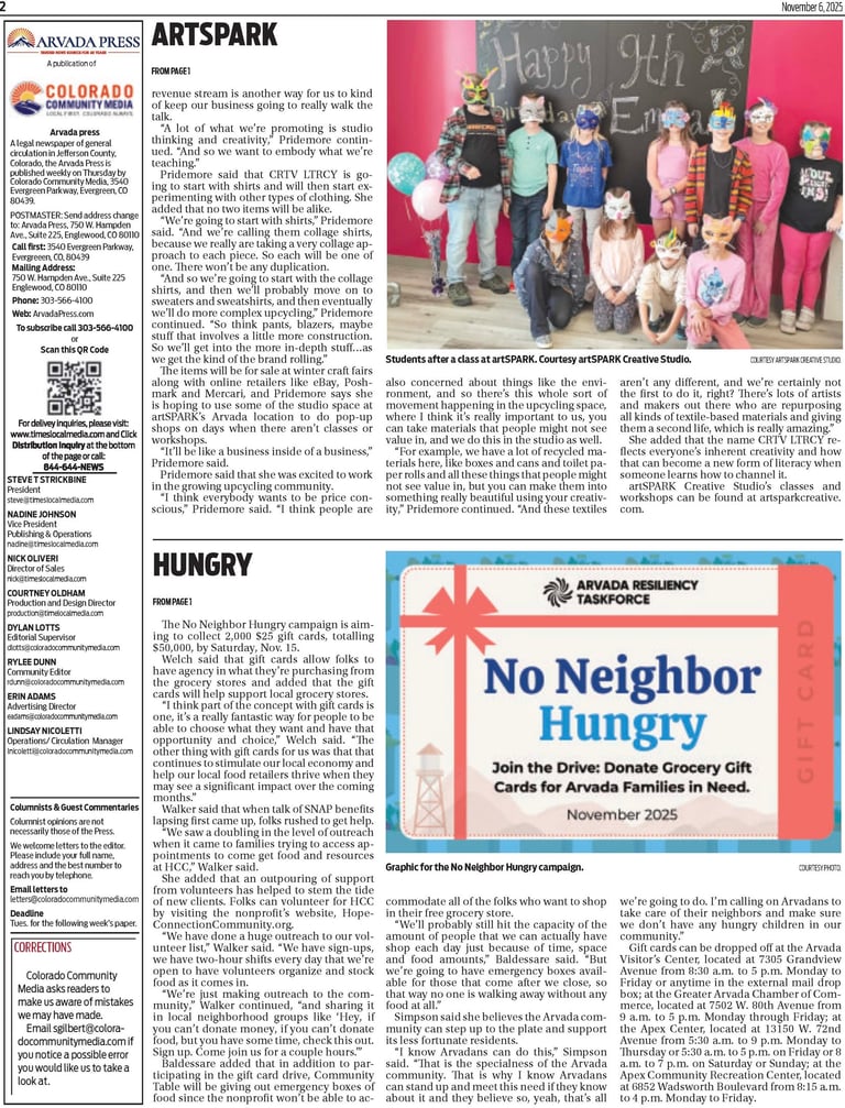 Times got tough so we stitched new beginnings. CRTV LTRCY is a sister brand of artSPARK Creative Studio, turning reclaimed textiles into wearable art to keep creativity, and creative jobs, alive. Every piece is hand-touched by local artists and educators. We believe creativity is the most renewable resource we have.