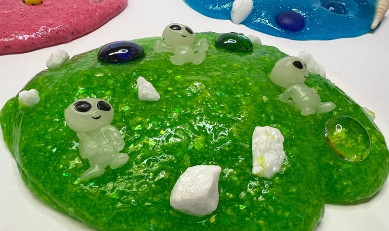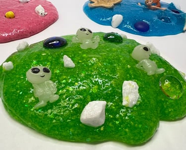 Let's get slimy - kids can craft their own unique slime, choosing the color, scent, texture, and special enhancements from an array of options. After creating their slime, we'll provide tools to enrich their slime play experience. The creativity doesn't stop there; participants will also have the opportunity to make unique 2-D art. This party is ideal for sparking creativity and making unique art and slime to take home! Join us at the studio or we can bring this theme to your event.